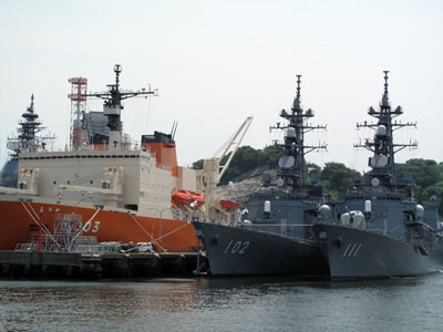 本日、横須賀港で船に乗り、アメリカ海軍第7艦隊と海上自衛隊の艦船基地を