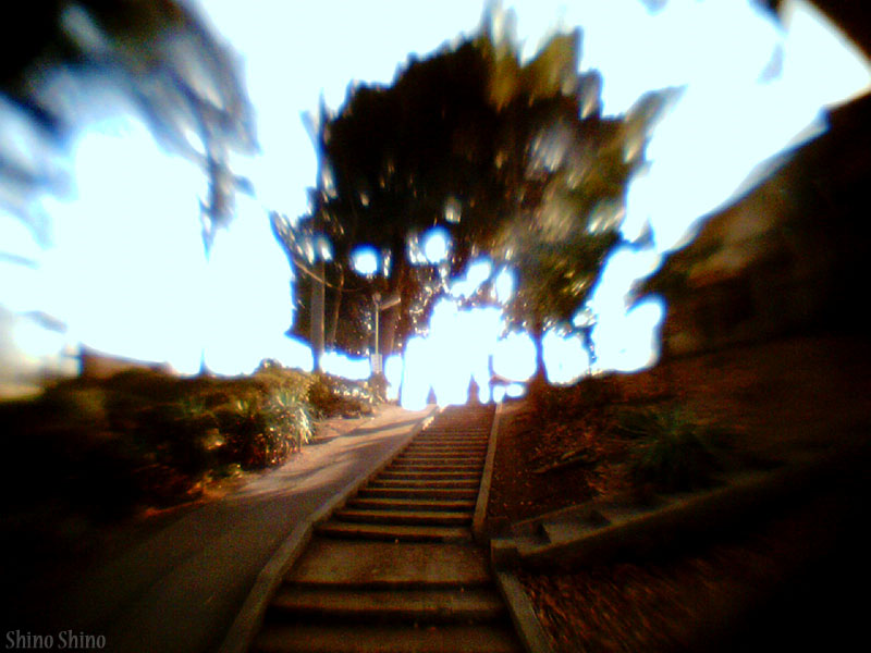 ▲魚レンズ装着VQ1015での1枚。境内への上り道風景。
