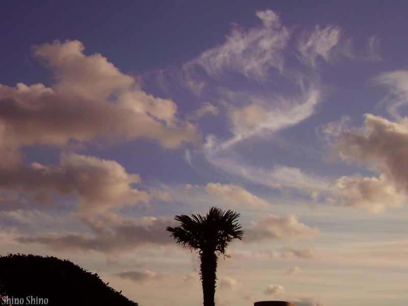 ▲陽を捕まえようとするがごとくの雲の手。携帯W61Sにて撮影。
