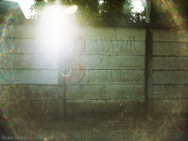 ▲壁の落書き1枚。太陽光がまあるく写り込んでおります。