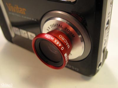 ▲左の赤いのがマクロ&ワイド兼用のレンズ。