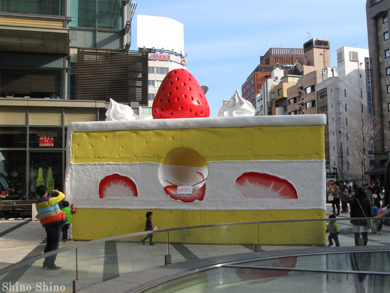 ▲ミッドタウン入り口の巨大なショートケーキ&フォークの