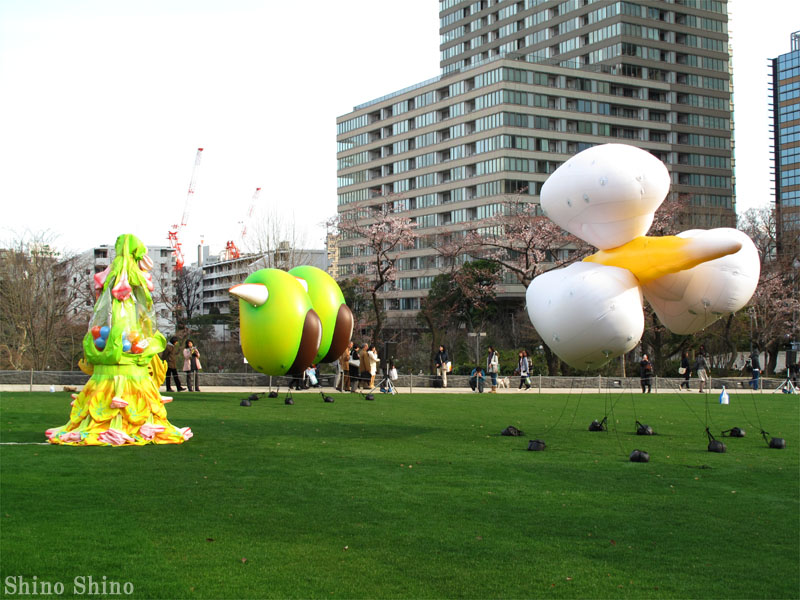 ▲ミッドタウン芝生広場にて出番を待つバルーンオブジェたち。