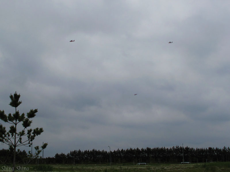 ▲撮影現場付近を飛んでいたヘリ編隊のショット。
