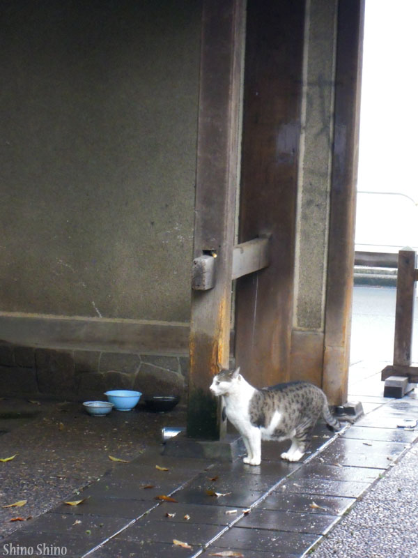 ▲で、反対側の門裏手を見ると、さらに別の猫と餌置き皿が