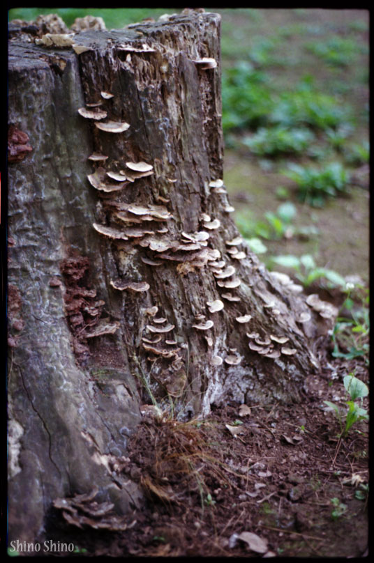 ▲キノコの生えた切り株ですが、露出が上手くあったせいか、