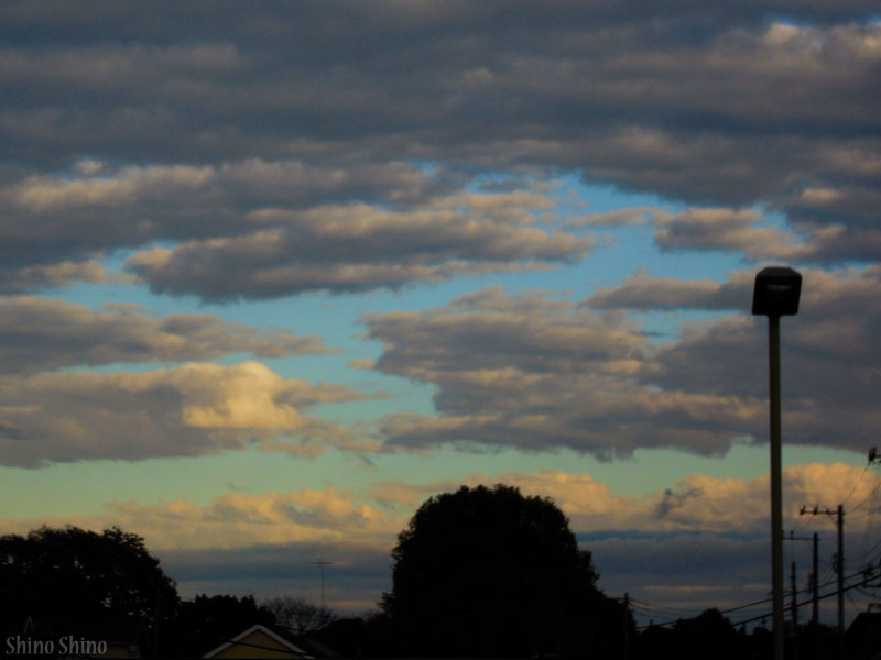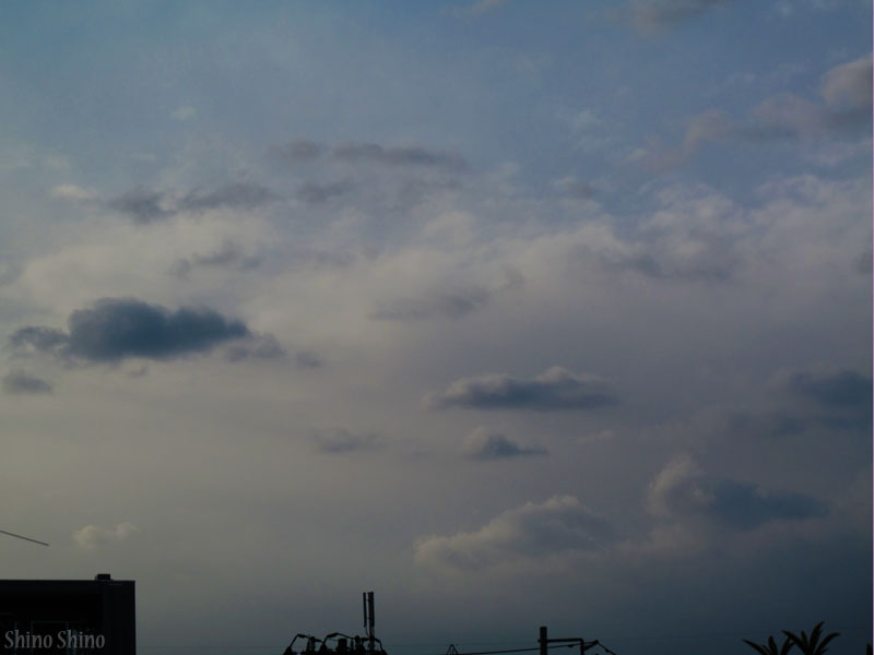 ▲まるで描き割りの様な本日の雲。S640にて撮影。