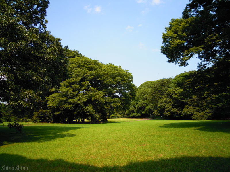 ▲思わず寝ころびたくなる芝生ですが、この暑さでは何分