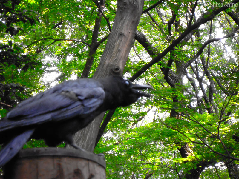 ▲目の前数十センチのところで鳴くカラス。