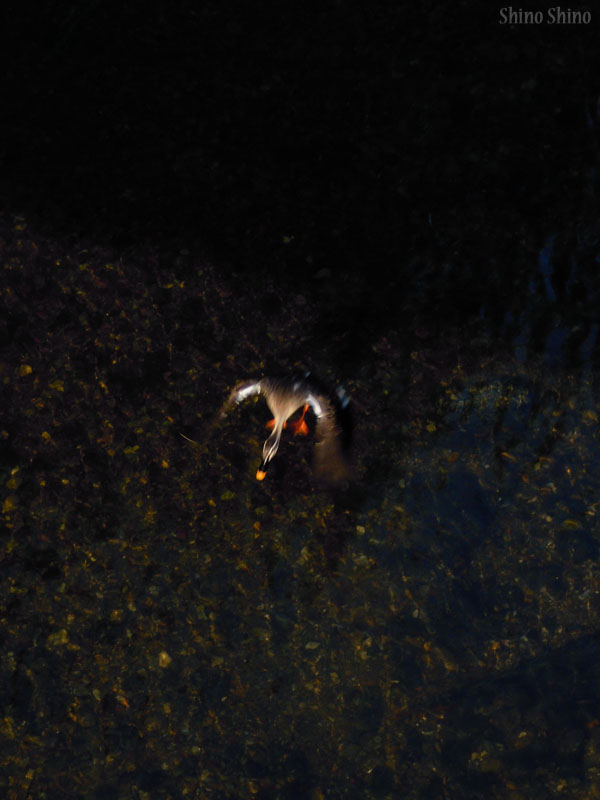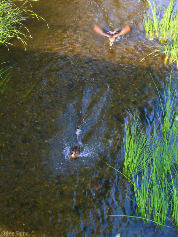 ▲もの凄い勢いで水上を羽ばたくカモ。