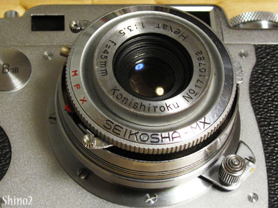 ▲レンズ部分のアップ。ヘキサー45mmF3.5。
