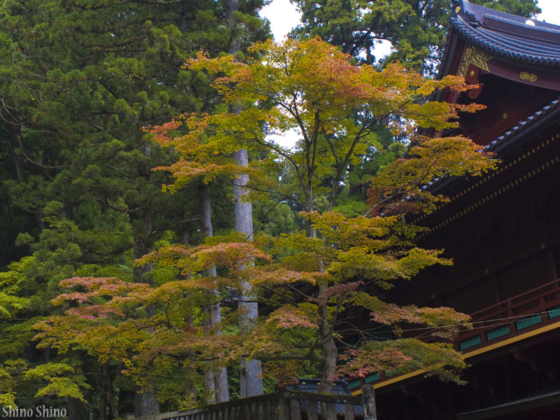 ▲日光東照宮への参堂にあった紅葉。初日午前11時半撮影。