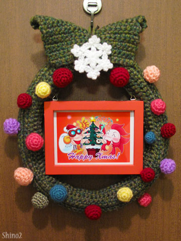 周囲の飾りは妻が編み、自分がイラストを描くという、