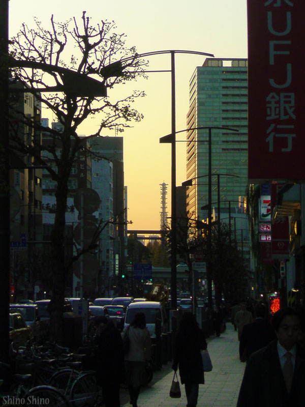 ▲本日は神保町から眺めた夕日に染まるビル群。