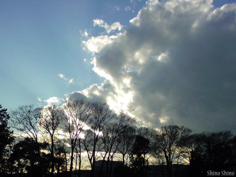 ▲同じく中川遊歩道途中、農家の木々をバックにして
