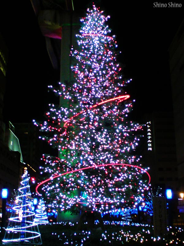 ▲立川駅、モノレール下の遊歩道にて綺麗に輝いていた、
