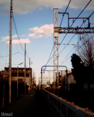 ▲線路沿いの道。光が若干陰っていると渋い色味に。