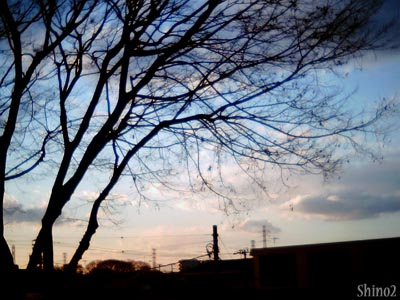 ▲R20沿いの夕暮れ風景。枯れ木に味が。