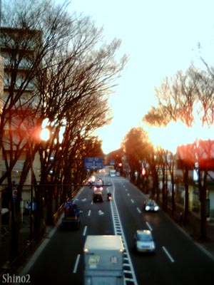 ▲黄昏刻のR20。夕日がにじみ出ております。