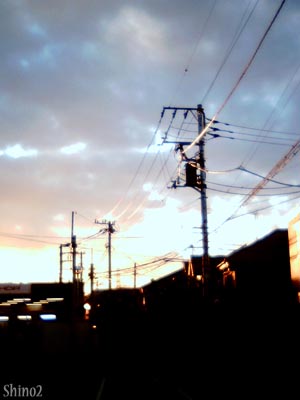 ▲帰り道の電線と夕日。露出バランスが極端になりますね。