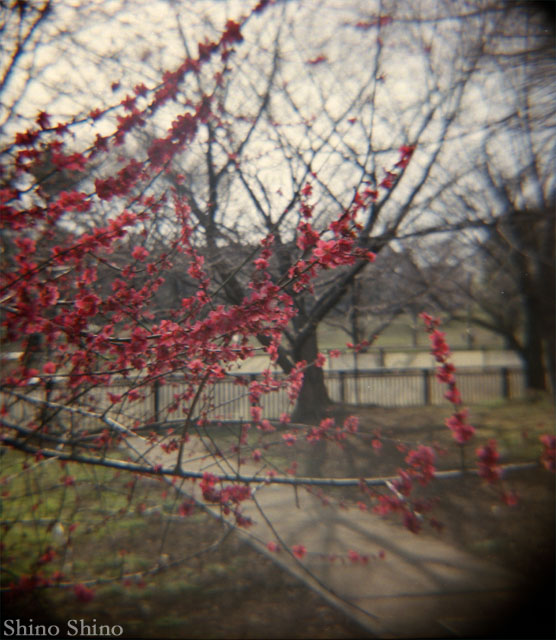 ▲ちょっと幻想的に撮れた、白梅と空の光。