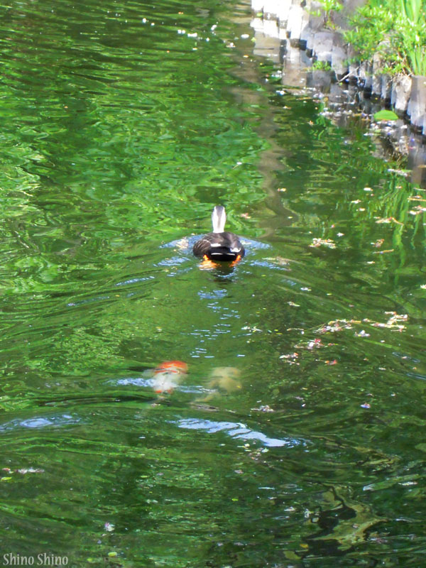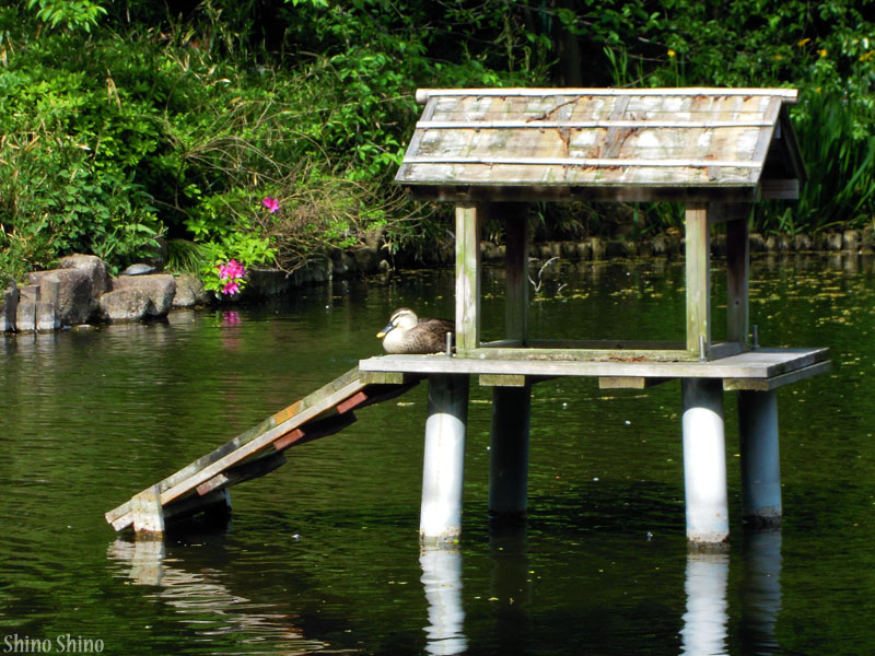 ▲日溜まりで気持ちよさそうにしているカルガモ。