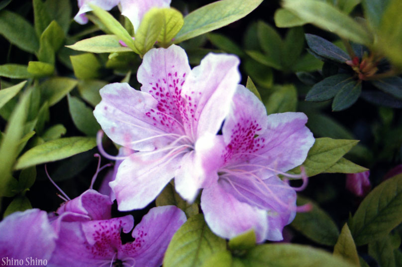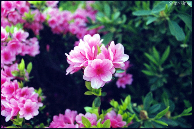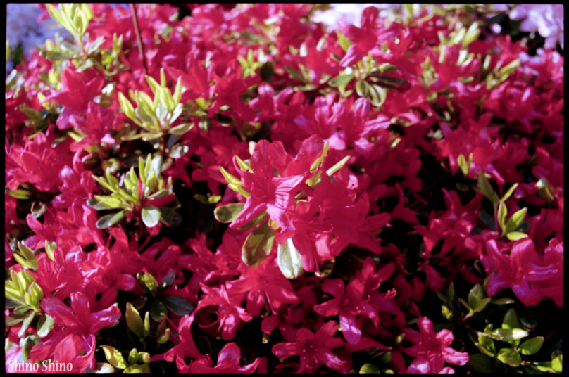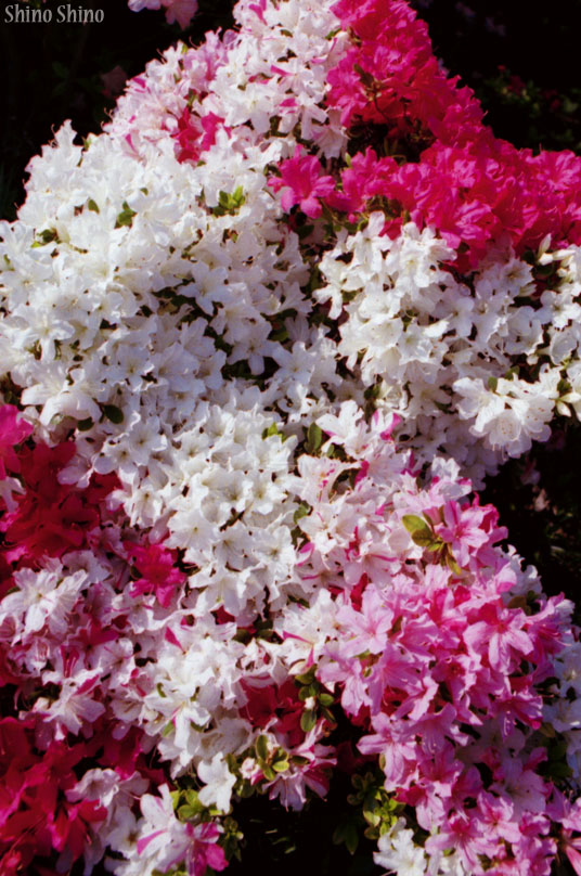 ▲白→赤に至る様々な中間色が混じり合ったツツジ。