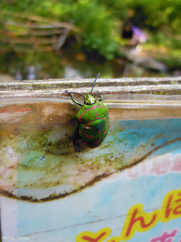 ▲同じく芦花公園内にいた、アカスジキンカメムシ。