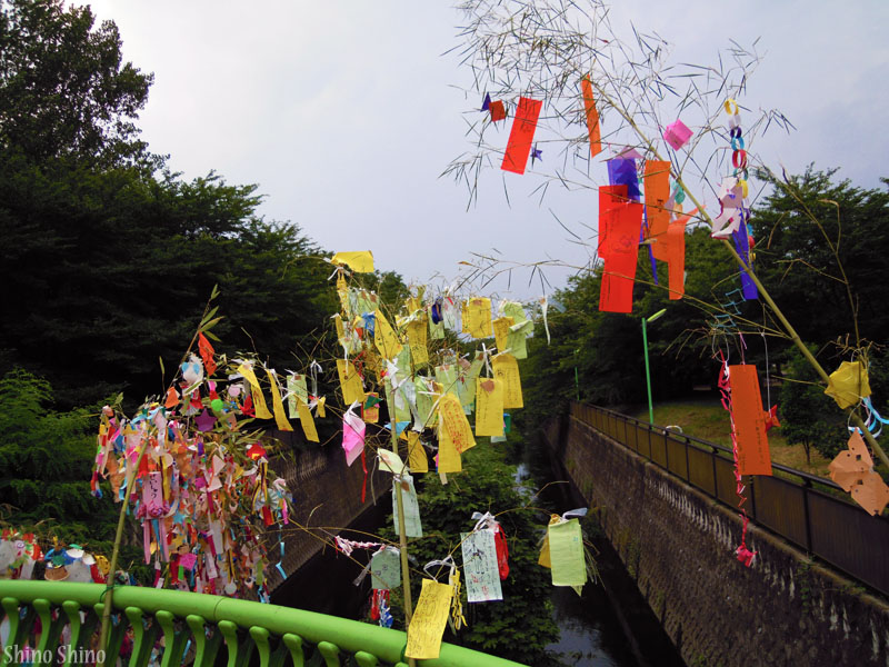 ▲祖師谷公園、せきれい橋に毎年設置される七夕飾り。