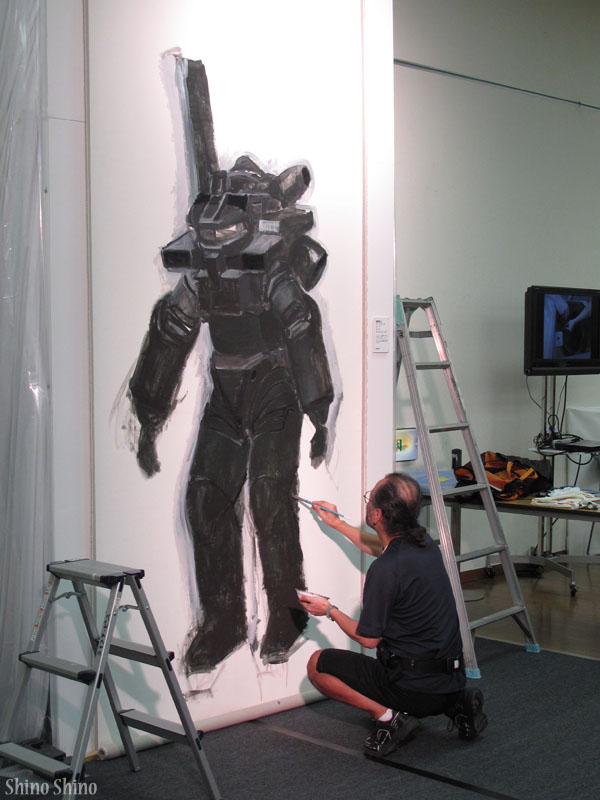 ▲その横でこれまた原寸のパワードスーツを加藤直之氏が