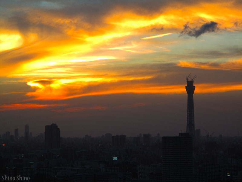 ▲夕暮れ刻、タワーの頂上まで登って観た東京スカイツリー