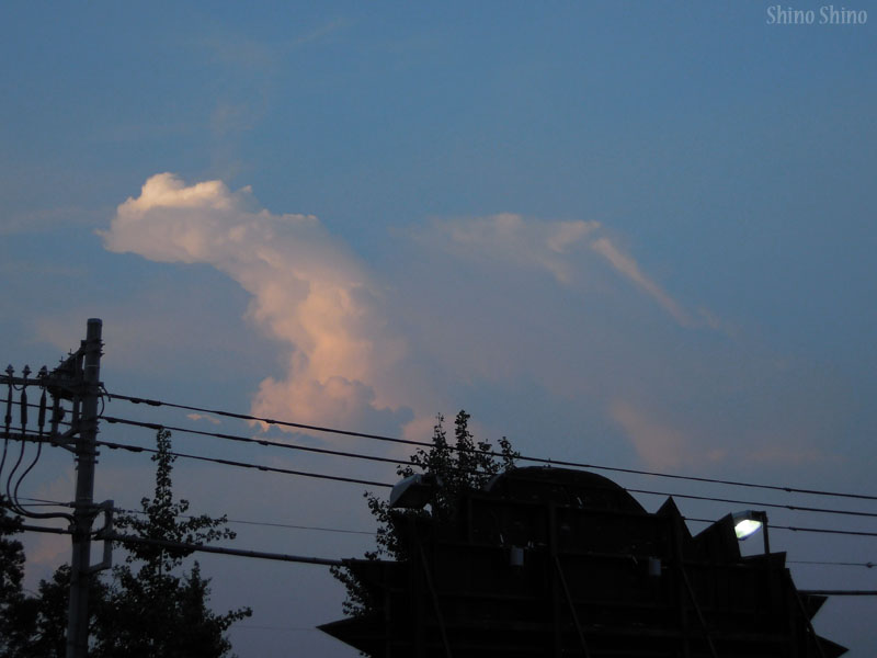 ▲夕方に見られた、恐竜の様な雲。