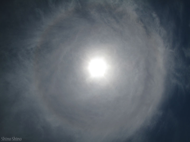 ▲太陽を中心にレンズのごとく丸くまとまった真昼の雲!