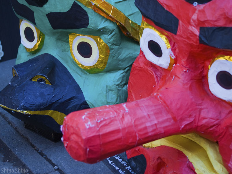 ▲遠くを見据えた? 高尾山の張りぼて天狗置物なり。