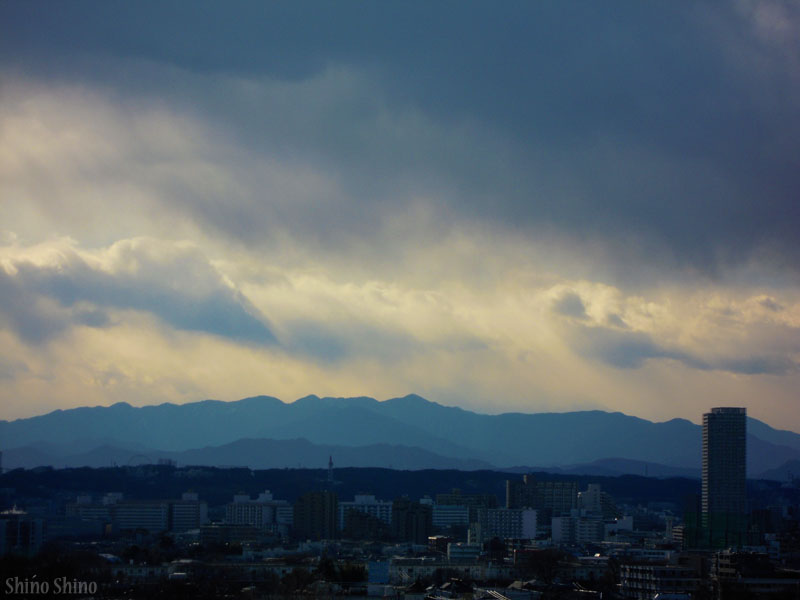 ▲西方面。奥多摩の山々の稜線がくっきりと写りつつの。