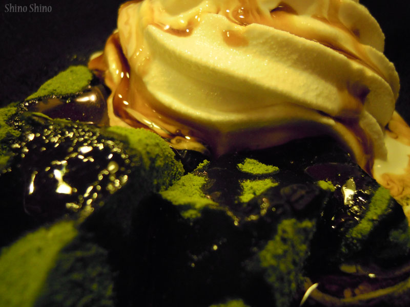 ▲本日いただいた、抹茶蕨餅クリームの檄接写。