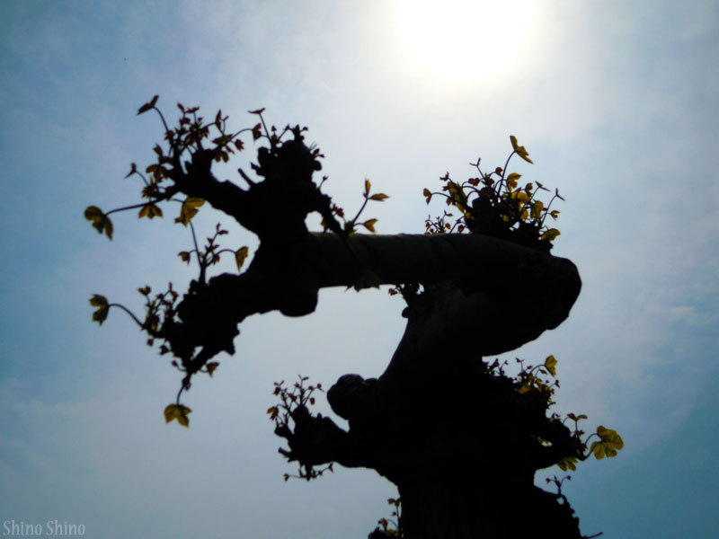 ▲陽光に照らされる龍の様な枝木。よぉ〜く見ると、左上には