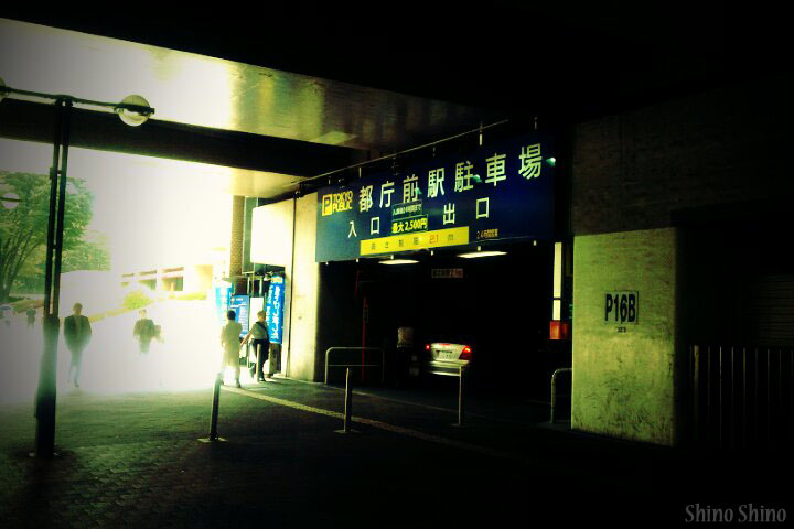 ▲都庁下駐車場入り口付近にて。